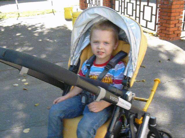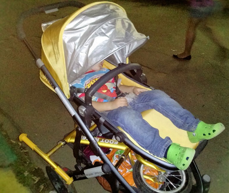 (Кстати, тут видно, что почти метр роста не мешает сыну сдовольным лицом икомфортом сидеть в коляске).