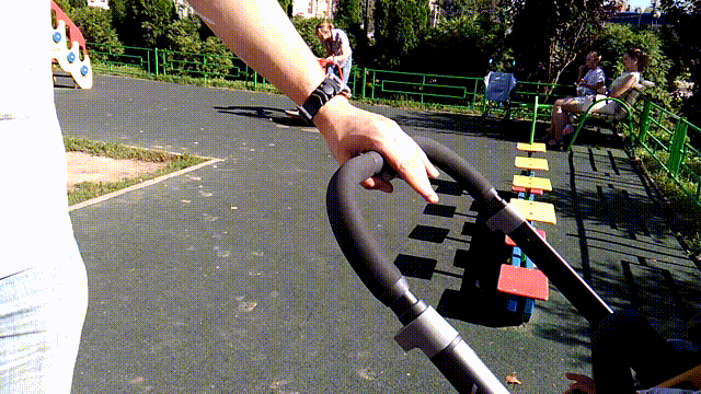 Теперь про ручку. Она телескопическая, четыре варианта длины. Выдвигается одним движением: