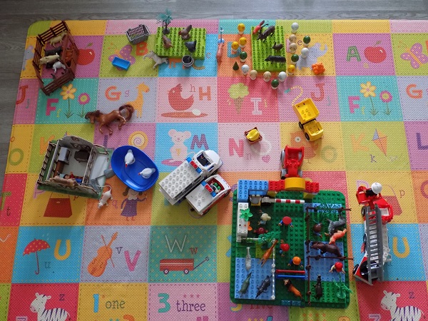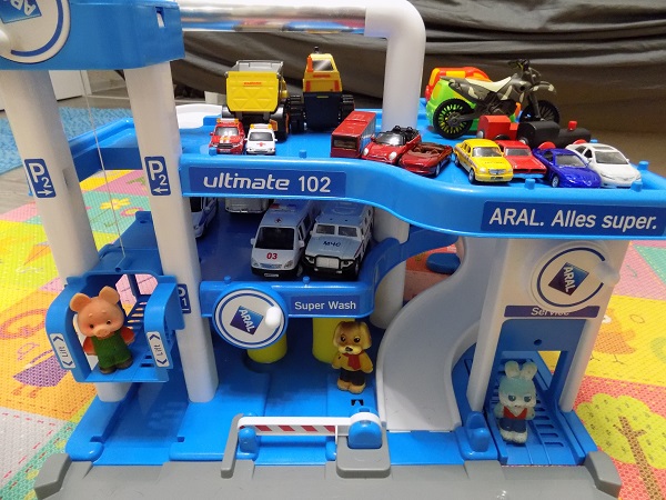 Их я разобрала и часть отвезла к бабушкам-дедушкам. У нас осталось не много, но зато самые важные и нужные - пожарная, полиция, скорая помощь и конечно экскаватор, плюс кемпинг Пеппы. Ну и никак я не могу расстаться с инерционными машинками K'S Kids, хотя ребенок в них давно не играет.