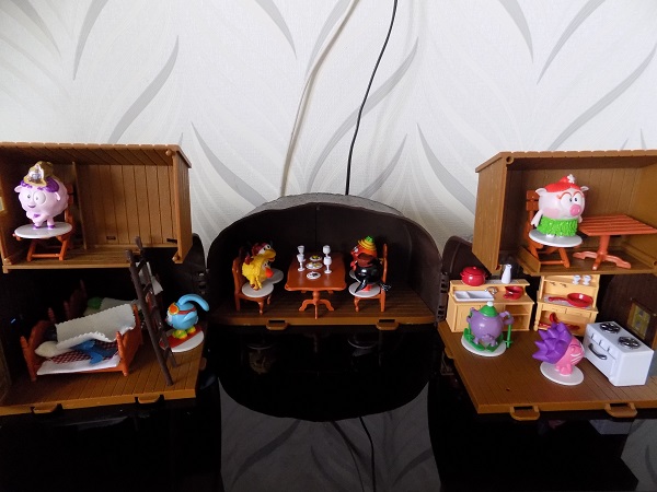 Домик из серии "Маша и медведь". С некоторым количеством живности и предметами интерьера, но я покупала еще отдельно мебель.