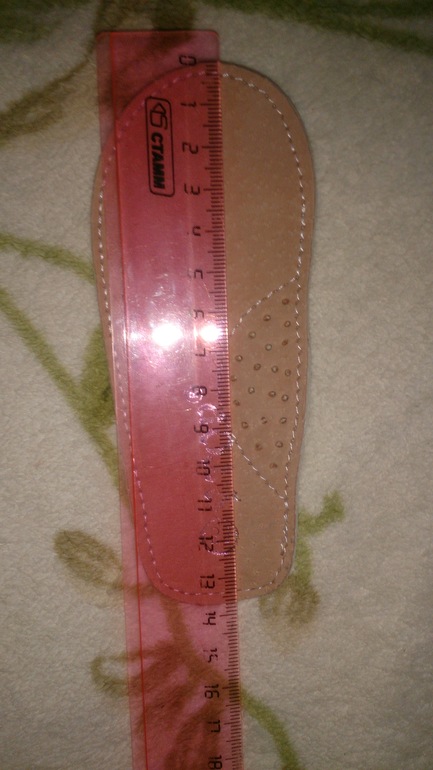 Ставите ребенка на пол, на лист бумаги, в носочке можно, прикладываете линейку как бы перпендикулярно полу, и отмечаете точки, где пальцы и пятка, потом соединяете в линию. Я так делаю по крайней мере. По стельке первой запаса нет вообще.