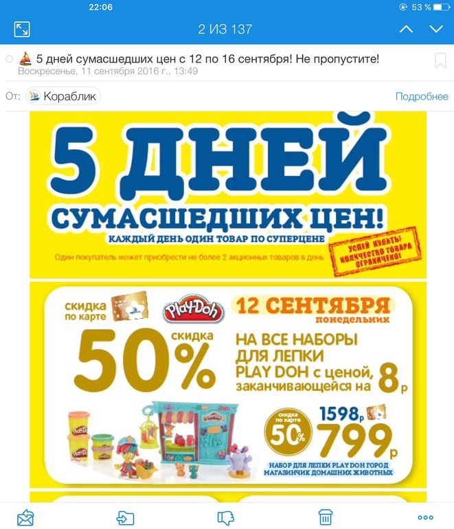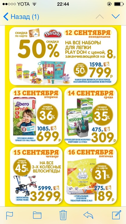 Velena (Лена я:)) Пристрой в дневнике в Выбор товаров 9 лет Акция в кораблике на плей до Распродажи. Скидки. Акции. Посмотрите еще 20 записей на эту тему Отменить Ответить ТОМАСЯ А ЧТО ЕЩЕ БУДУТ В ДРУГТЕ ДНИ ПРОДАВАТЬ - ЧТО ТО Я РЕКЛАМУ НЕ ВИДЕЛА СКИНЬТЕ ПОЖАЛУЙСТА 11.09.2016 Ответить Velena (Лена я:)) Пристрой в дневнике 11.09.2016 Ответить ТОМАСЯ СПАСИБО 11.09.2016 Ответить Светланка 11.09.2016 Ответить ТОМАСЯ СПАСИБО 11.09.2016 Ответить Huppatam.ru у кого есть скидка Скидка в Детский Мир 1000р на заказ от 4500 Чаты Беременных Выберите чат: Январята-2026 Февралята-2026 Мартята-2026 Апрелята-2026 Майчата-2026 Июнята-2026 Июлята-2026 Августята-2026