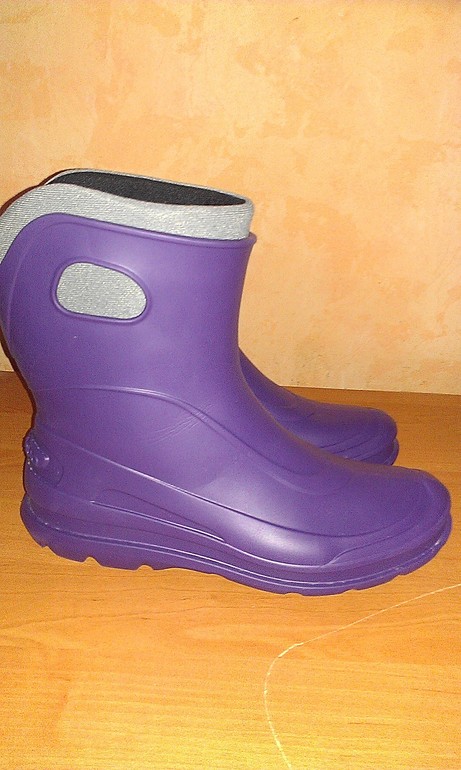 В сапоги из ЭВА надо вставлять стельку, тогда не будет образовываться конденсат. В теплое время года кожаную, а холодное - войлочную. Как бонус - с войлочной стелькой можно даже не вставлять чулок примерно до нуля