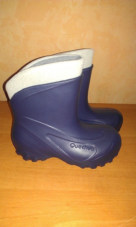 у меня у всех детей эва, у старших декатлон, у младшего две пары эва, желтые без вкладыша - на погоду до +5, сегодня в них ушли в сад, вторые с поролоновым вкладышем из декатлона - от +5 и до -5, на снежную кашу и слякоть, тоже ими очень довольна))