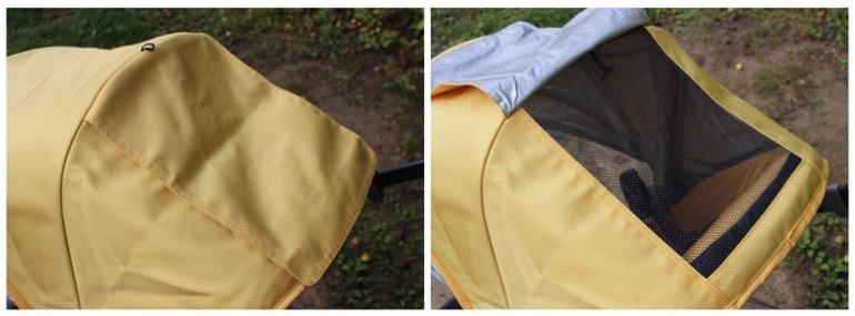 Но, сразу хочу отметить и небольшой непродуманный момент в отношении изменения высоты капора. Я не нашла никаких креплений, которые позволили бы зафиксировать капор на необходимой высоте. Он не меняет свое положение при езде по ровной дороге, но, если ехать по дороге с неровностями, камнями или ухабами, то со временем он начинает опускаться вниз и это не очень удобно, так как появляется необходимость возвращать его в выбранное ранее положение.