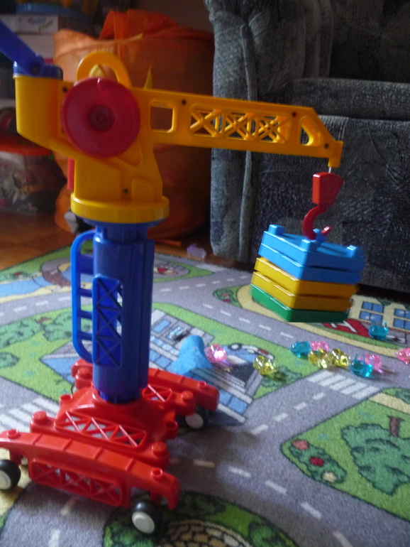 Но все это уже придирки, т.к. основное назначение конструктора - это строительство домов. Дети естественно совершенно не обращают на вышеперечисленные нюансы ни малейшего внимания - строят как хотят и даже находят дополнительные функции. : )) Так, например, выяснилось, что блоки с лестницей (фундамент) можно крепить друг к другу и получившийся груз перемещать краном, как на настоящей стройке!