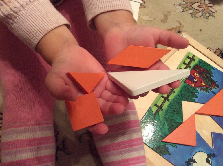 Сейчас начала еще вот так играть-складывает из деталей фигуры без картинок и говорит, что получается.