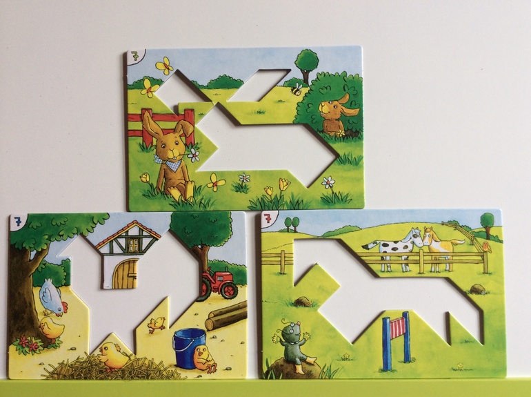 После месяцы игры мы не собрали ни разу лошадку из 7, остальные складывает достаточно быстро иногда соблюдая количество на карточке, иногда нет. Ане очень нравится игра, сама начинает играть и собирает с интересом. "Плюс" еще и в том, что можно собрать пару фигур и отвлечься, потом опять вернуться.