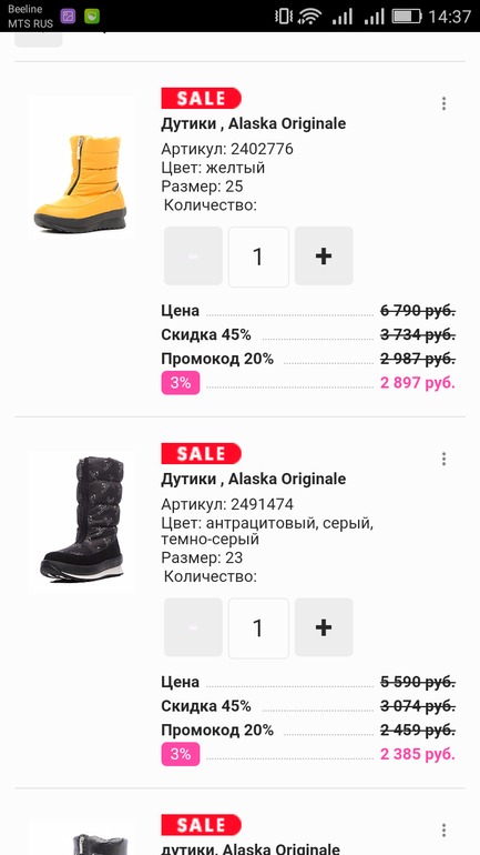 Распродажи. Скидки. Акции.Есть несколько моделей, в основном малышовые размеры. С промокодом получается приятная цена. А с хорошей личной скидкой и вовсе сопоставимая с Фамилией. Может кому актуально.