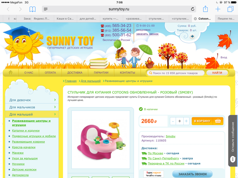 смоби в обычную ванну не встал-он большой,присоски не прилипают ,купила горку для купания априка-по мне так намного удобнее,но я брала новую на авито-за полную стоимость не купила бы-дороговато