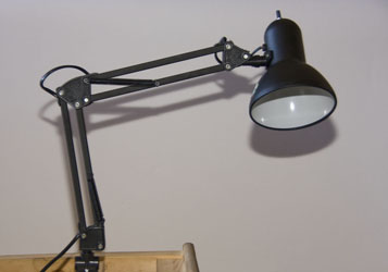 Мы почти как первую купили в Хоффе на Автозаводской, только она не привинчивается к столу, а ставится на него. Лампа с патроном, т.е. можно вкрутить лампу накаливания.