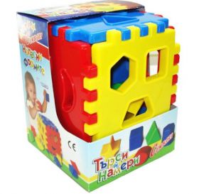 Поняла... Кубик есть у нас такой, собирается как пазл. На каждой стороне дырочки разных форм. И фигурки есть таких же форм. Оно?