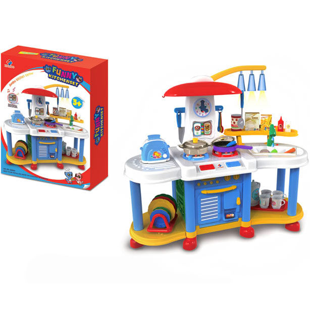 У нас кухня уже почти два года. (на 2 годика дарили) стоит, как новая. Одна из самых удачных игрушек. Книга рецептов на русском в стихах, горелки скворшат, шипят, и музыка играет, вода льется (но мы не пользуемся), лампочки горят. На все свои батарейки, т.е все работает по своим блокам. Ну и куча всяких дополнений в виде посуды и коробочек.