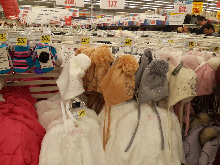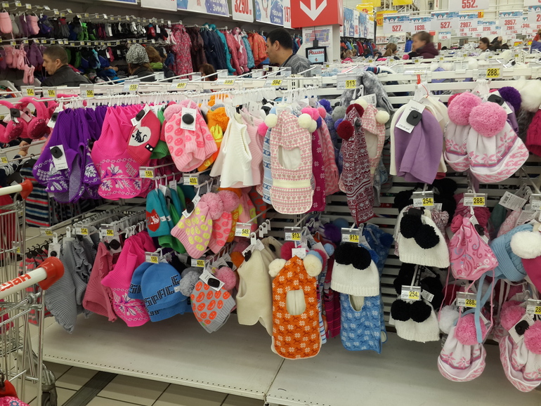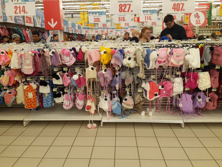 Подозреваю, что во всех Ашанах сейчас много шапок выложили, выюор большой:)