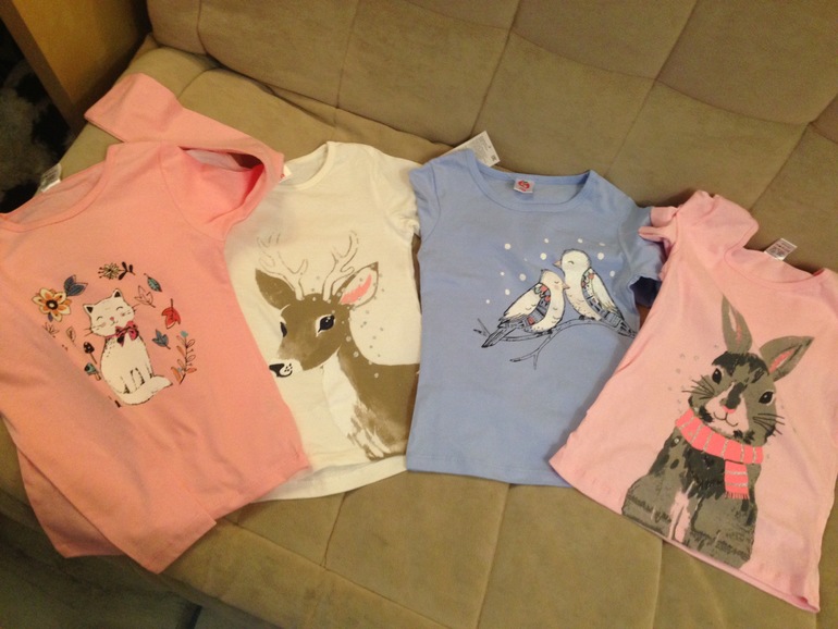 пуховиков этих в фамилии тьма тьмущая всех цветов радуги...футболочки очень симпатичные по рисунку!!!