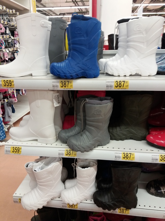 Адекватная цена для резиновых сапог - до 500 рэ. Лемиго в Мазе больше 1,5 тыр, про Кроксы вообще молчу. Но меня Кроксы спасают - взрослые, другие (не брендовые) себе бы не купила - разве что лягушки LLBean))