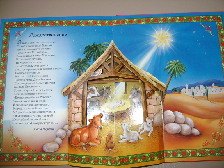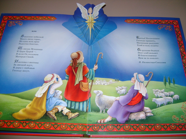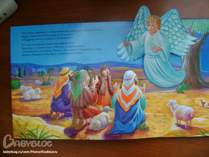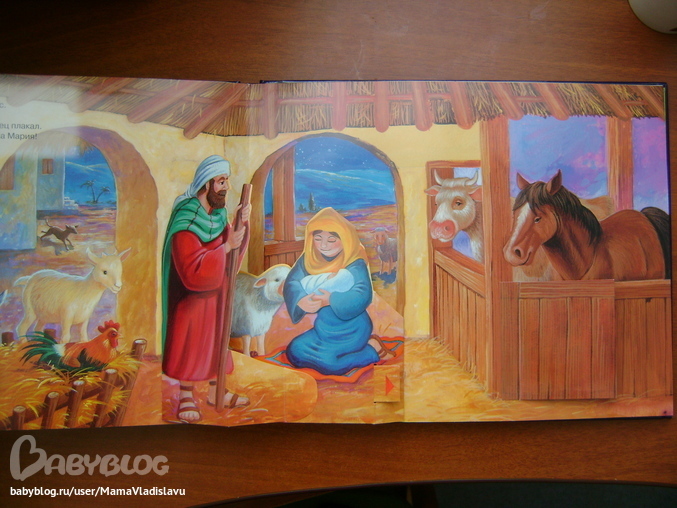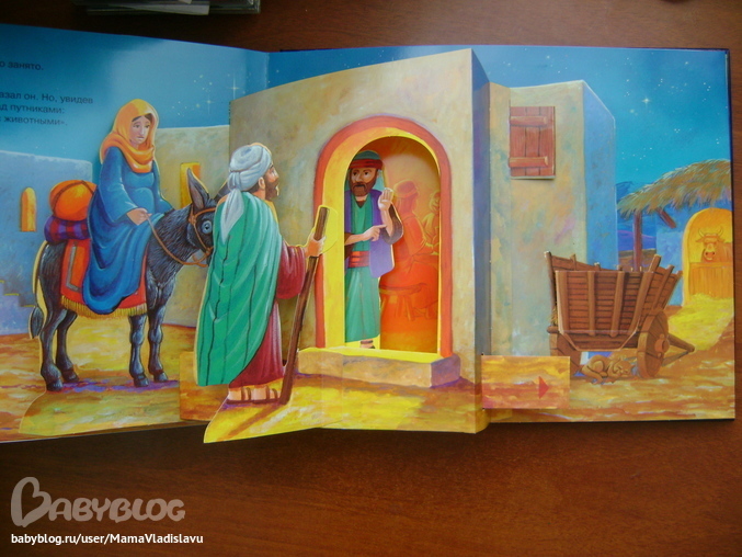 По мимо этого на каждой страничке есть стрелочки,которые приводят в действие панормаку)Дочке очень понравилось когда Мария качает младенца на руках )И много разных окошек с секретиками![]()
