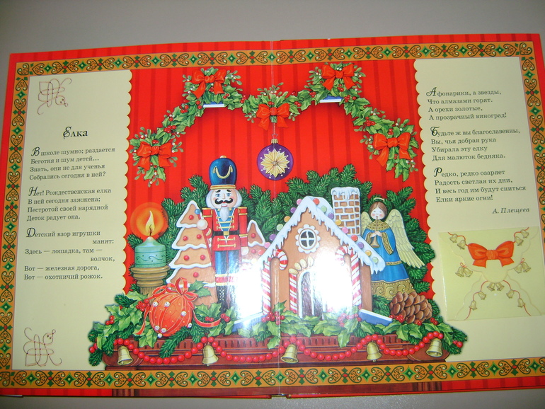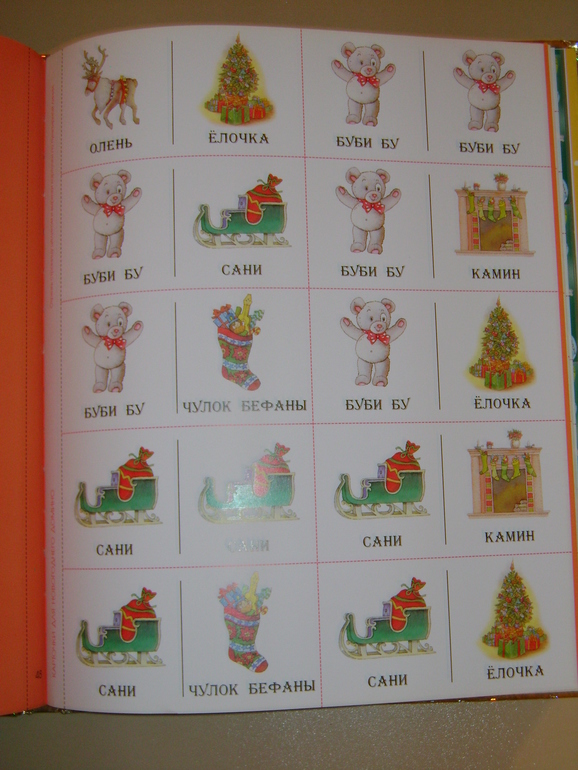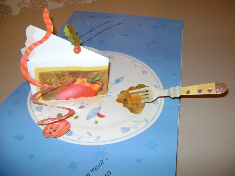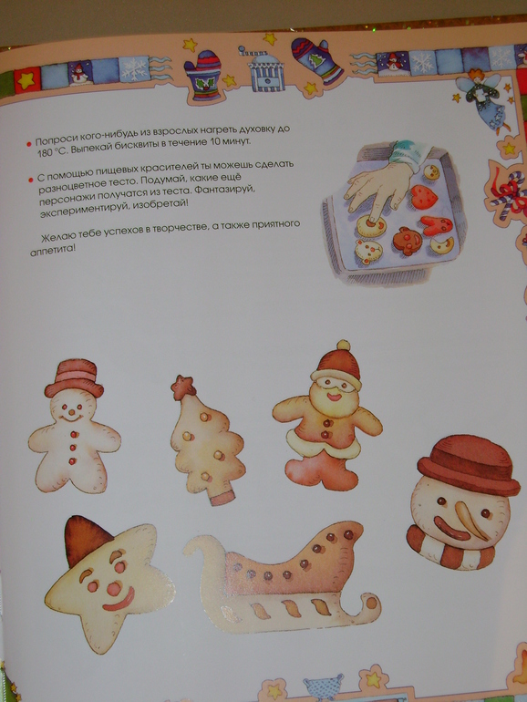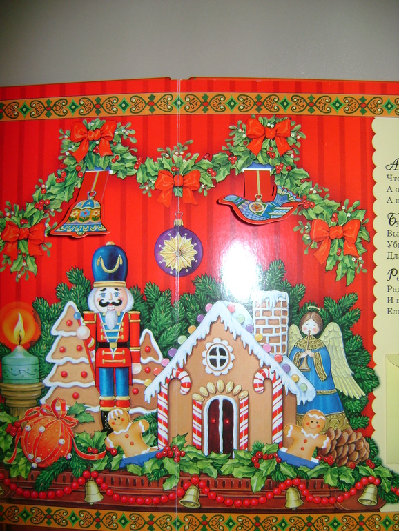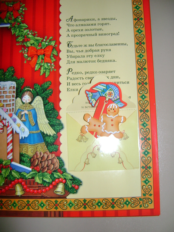 На этой страничке есть сюрпризик,в конвертике находятся пряничные человечки и игрушки(их нужно вставить в специальные прорези)![]()