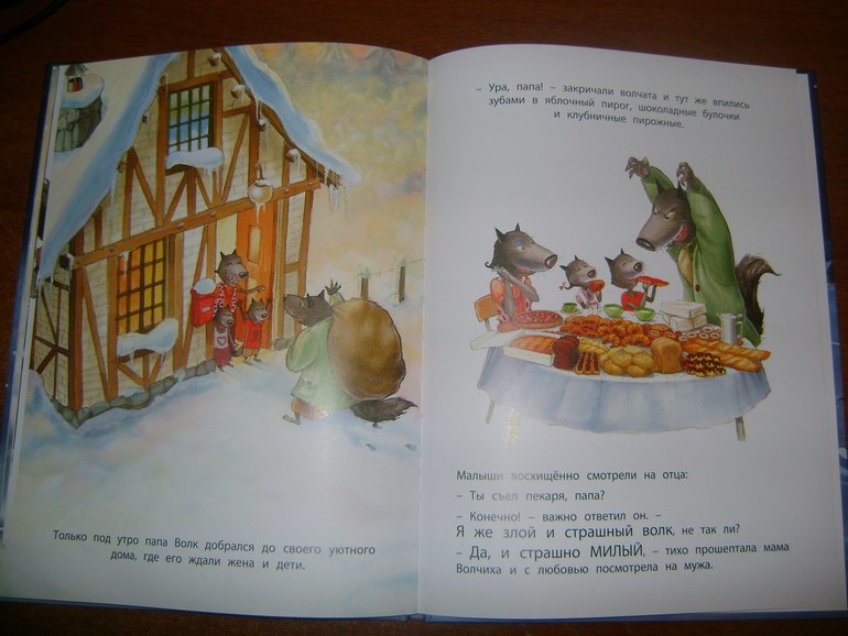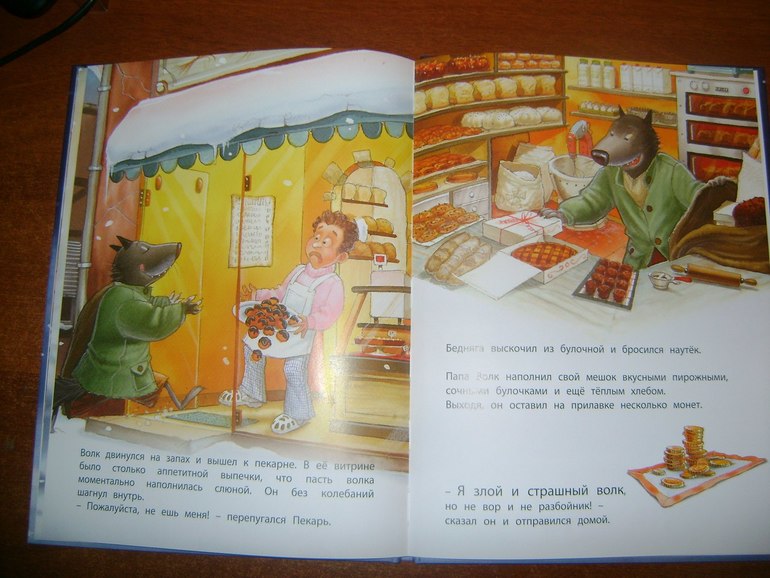 Вот так волк и добрался до пекарни,где быстренько наполнил свой мешок теплым хлебом и сладкими булочками)\