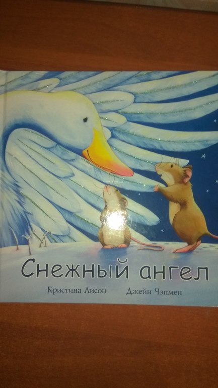 Бежав по лесу,мышата увидели в дали, как они думали снежного ангела(ни кого иного как гуся)они стояли и любовались его красотой,но вдруг уставший и замученный "ангел" упал в снег от усталости,они подошли к нему и отдали свои подарки,ангел накушавшись, окреп,и взлетел в небо-оставив мышатам свои теплые перышки