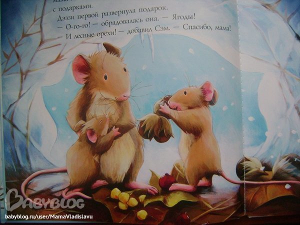Рассказ о том,как проснувшись утром в Рождество-мама мышка подарила мышатам подарки,ягоды и орехи и попросила их найти что нибудь для утепления норки