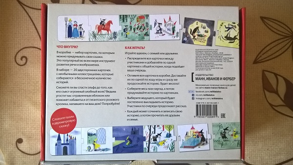 Красивая и прочная коробочка для хранения. Красивые качественные двусторонние карточки. Красивые иллюстрации Анны Лаваль. У нас есть кубики историй, но они все-таки обезличенные, а тут сказка как будто сошла со страниц книги или экрана телевизора.![]()