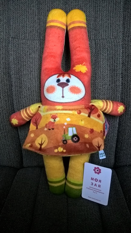 За-а-ая. Это замечательная и очень приятная во всех отношениях тактильная игрушка-перевертыш. Подарок, наверное, скорее для меня, чем для сына. Хотя мы любители зайцев, с один спим уже почти 4 года. Так что вот, будет у него мобильная подружка. ))