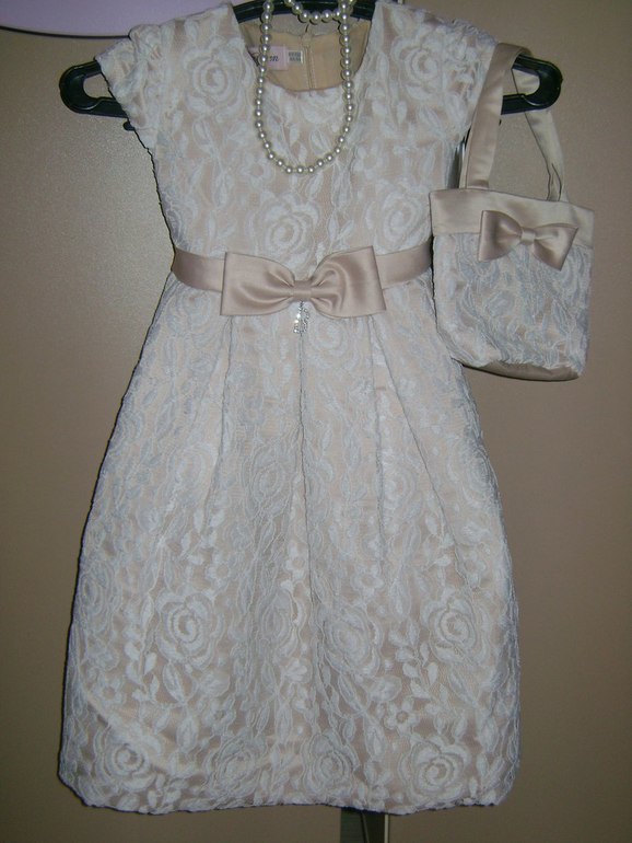 В комплект входят бусы и сумочка-видимо это и сыграло для дочери главную роль в выборе платья)