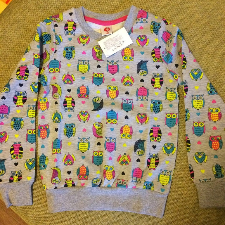 Отличная кофточка. Купила сразу три штуки. Месяц ходим, стираю каждый день. Ничего не делается. Вот эта, с совами, самая нарядная. Уж, цену то свою, копеечную, точно оправдывает.