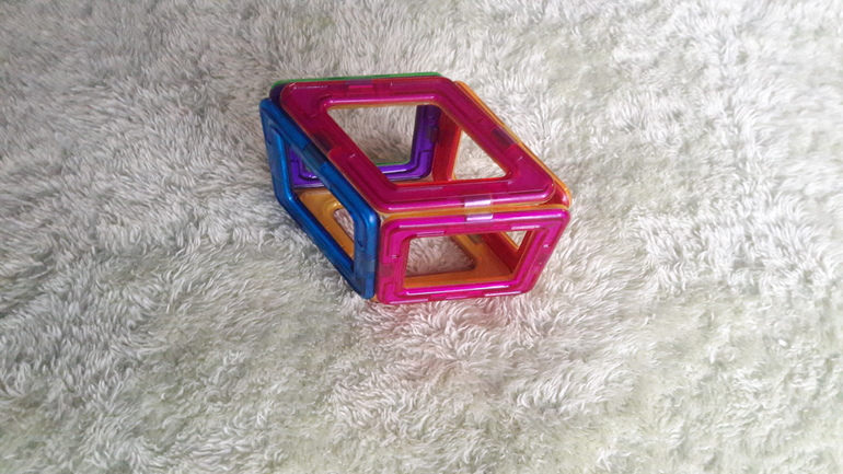 Конечно, из самого простого - это просто соединять детали, но полчаса игры и начинает получаться машина, дом, забор. Таким и на плоской поверхности играть можно, на столе например. Е меня фото в телефоне только простой фигурки есть, что он делал, но самое интересное началось мама рассказывала, когда мы домой ушли.