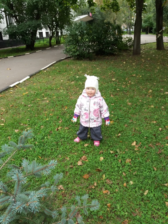 Итак, учитывая, что 5С ниже нуля в моем случае, это еще не глубокая зима в минус 18С, как у нас обычно бывает, гуляли без поддевы, просто в колготках и хлопковой футболке снизу.