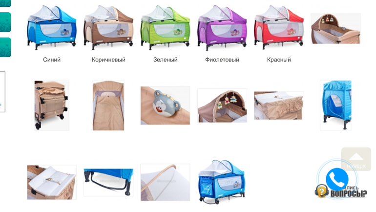 3. Многофункциональный манеж-кровать: с пеленальным столиком (кстати если кокон или колыбель, то столика у меня нет, тоже что-то придумывать надо); с верхним уровнем дна до 6 мес малыша; Свето-музыкой и системой укачивания; с подвесными игрушками; капором от солнца и москитной сеткой, чтоб летом комары не кусали, а ещё в нем есть боковой лаз для ползающего малыша, и карман для хранения игрушек.