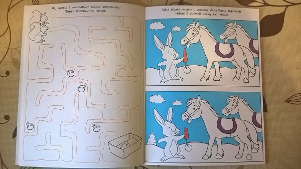 В книге 50 новогодних заданий. Проводилки, найди отличия, проведи по точкам, раскрась и т.д.