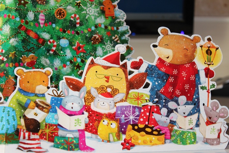Книга с клапанами, на последней страницы которой елка-панорама.