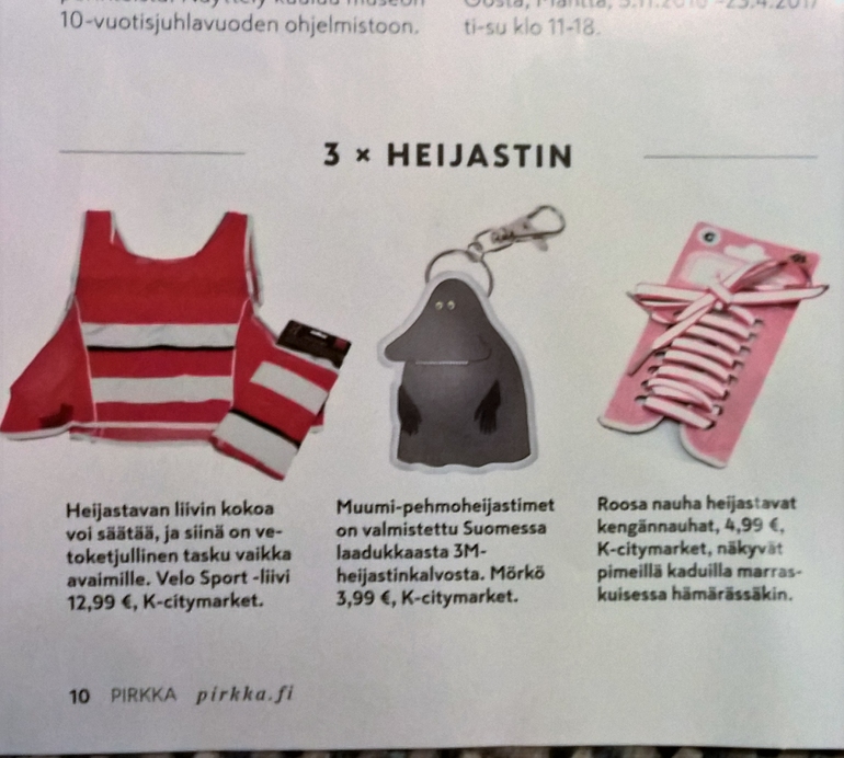 Детская безопасность: шлем, круг, защита, ограждениеЖиву в Финляндии, здесь большое внимание уделяется защите населения в темное время суток, осень-зима. Деткам одевают спец жилеты со светоотражающими полосками при прогулке в саду/ нас классах школы. Для взрослых и подростков есть брелоки и шнурки, ну и на одежде /рукавицах/обуви/колясках есть полоски светоотражающие.
