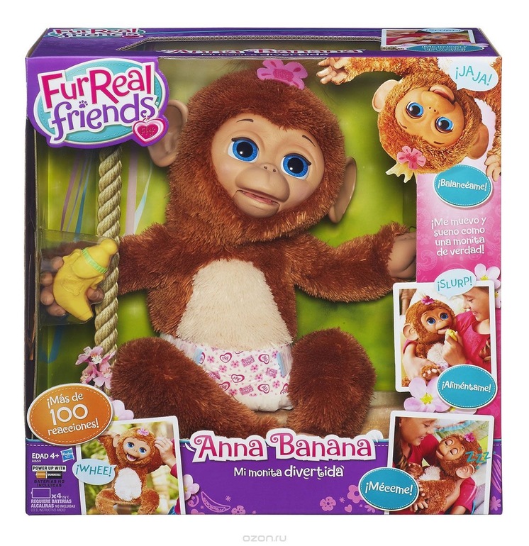 У нас такая, дочка часто играет. Катает в коляске вместо кукол. По качеству отличная, мордочка сделана как будто кожа. Моргает глазами, засыпает, если кладешь и храпит) сосет банан со звуком ну и кричит как обезьяны)