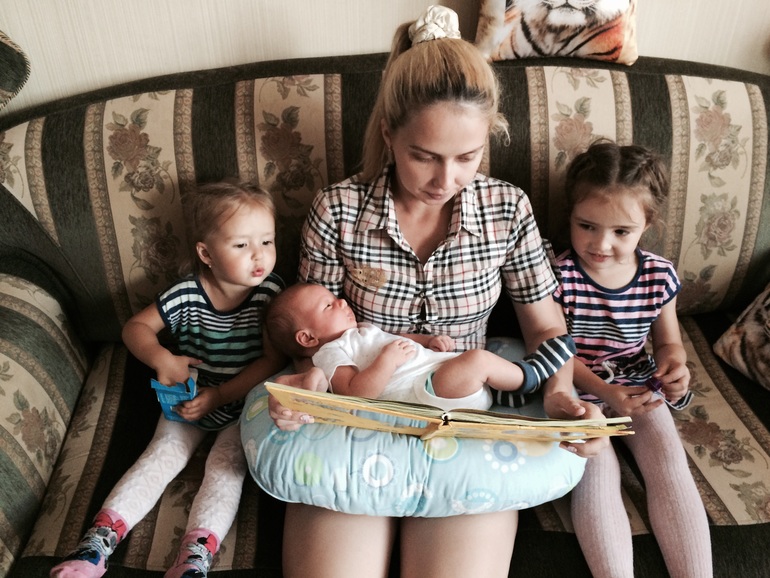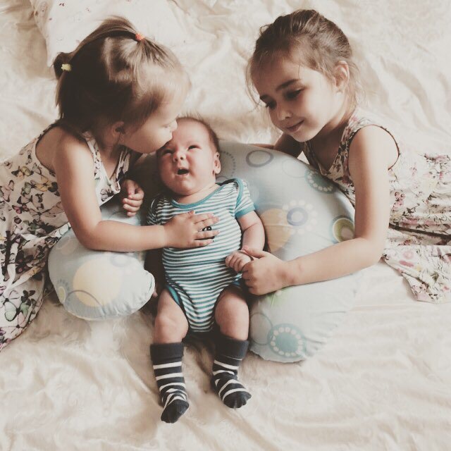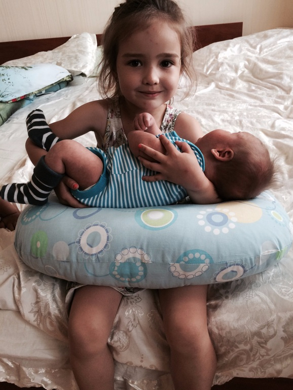 В инструкции к подушке использование такого положения предусмотрено с 2 месяцев,но мы не могли не попробовать и его. И знаете, очень удобно Аскару наблюдать за сестричками и находится в относительной безопастности от них же))) Положение у ребенка физиологичное, boppy обнимает малыша, как мамины ручки.