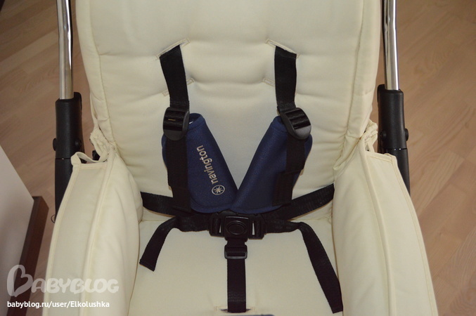 Предусмотрены регулируемые 5-точечные ремни безопасности, которые защелкиваются в круговую застежку - нажал на кнопочку по середине и отстегнул. Вертикальные ремешки имеют мягкие съемные накладки (у нас синего цвета):