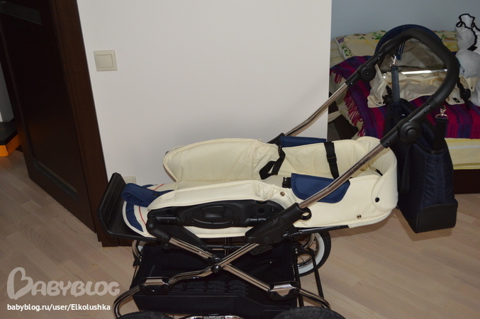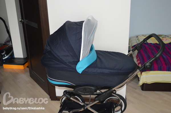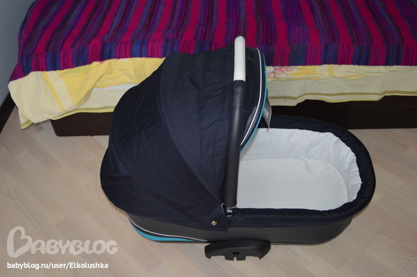 Размеры люльки Genua (ставится на все шасси) - 75*34 см, вес - 4,9 кг (т.е. с шасси Caravel получается 17,5 кг). Максимальный допустимый вес ребенка - 9 кг. Люлька складывается гормошкой (фото не сделала, к сожалению), что облегчает ее транспортировку)))