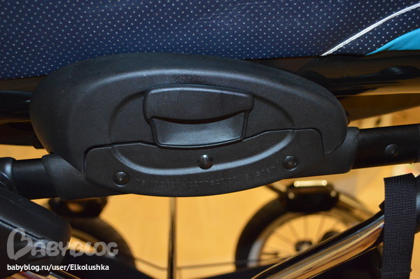 Положение спинки меняется очень легко, нужно оттянуть расположенную сзади ручку: