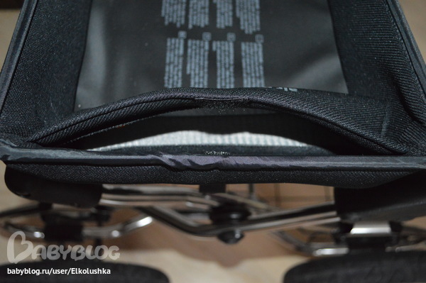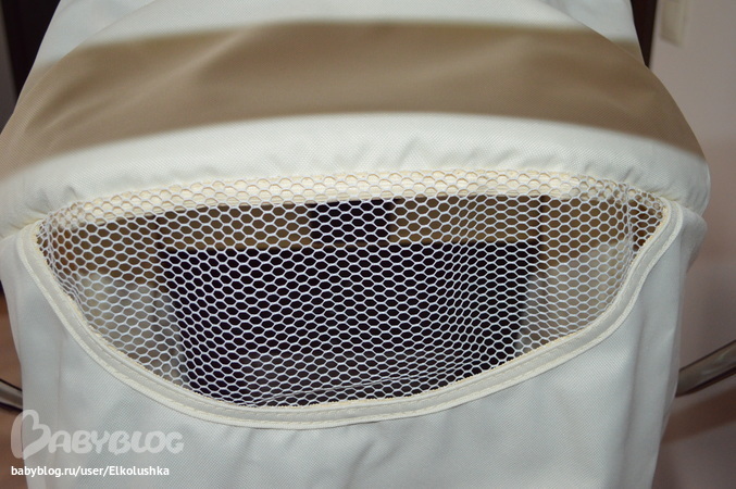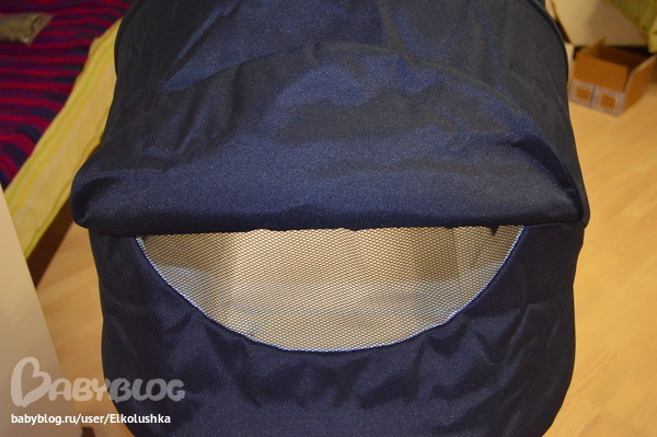 Как и в капюшоне люльки, в модели 2012 года в капюшоне прогулочного блока предусмотено вентиляционное окошко-сеточка:
