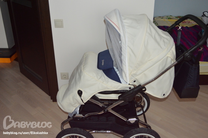 Так же легко, как и на люльку, на прогулку надевается москитная сеточка: