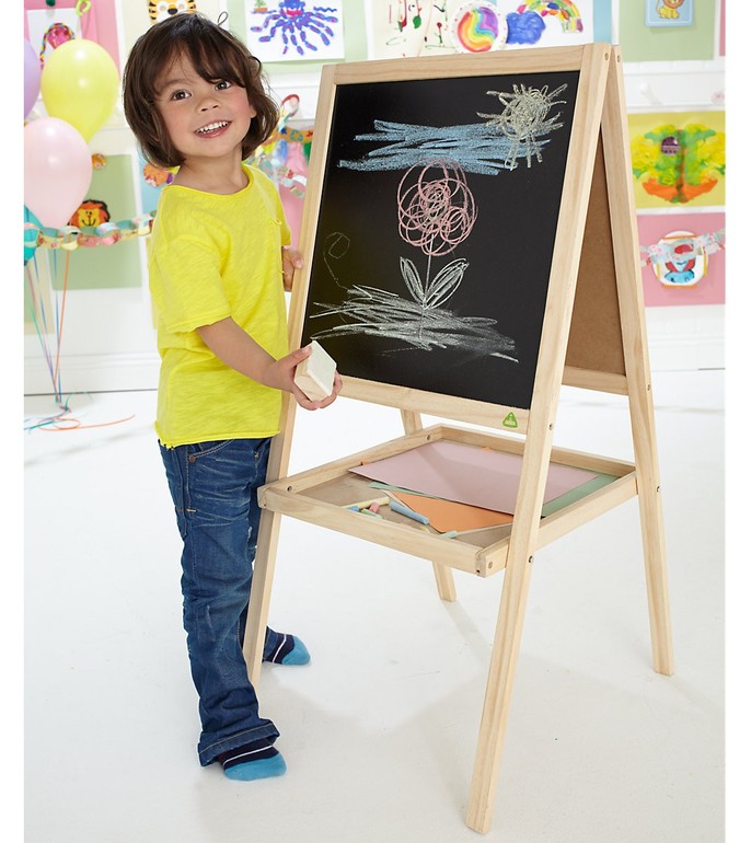 Хочу начать приобщать дочку к творчеству. Задумалась над покупкой мольберта, а тут ещё и в elc на скидку наткнулась. Смотрю вот такую модель