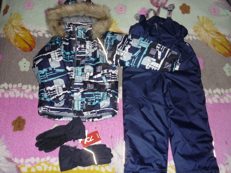 Начну с зимнего комплекта Хуппа, купила его давно, лежит второй год, и в эту зиму наверное не поносим) Что-то пошло не так в голове и я переборщила с запасом)) 122р. Достался в СП за 4300. Перчатки рейма из дочек за 700, тоже оч велики пока))