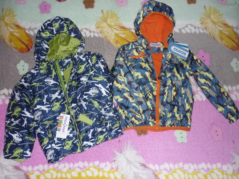 Куртка Плей тудей демисезон, на флисе, толстенькая. На след.осень наверное) за 1600. И ветровка на флисе без утеплителя за 1100. Все 122 р. Все с BW)