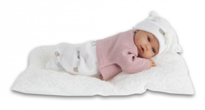 На новый год получит еще одну дочку от бабушки. 37 см. Вообще дочь очень любит кукол с мягких телом, они легче, их удобнее на руках носить, на колени садить, в кроватке лучше и ровнее лежат.