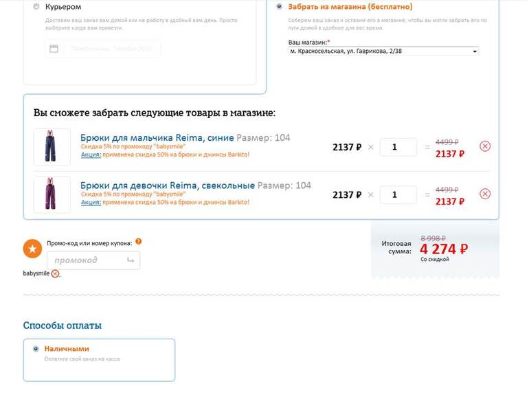 У меня срабатывает всё, как только почту ввожу, к которой карта привязана бонусная. Рада что у вас всё получилось, а то размеры на мальчиков таят на глазах.