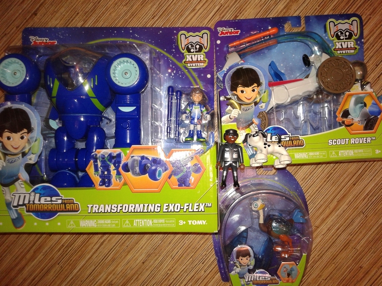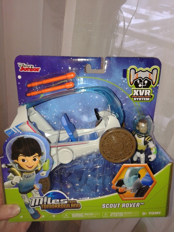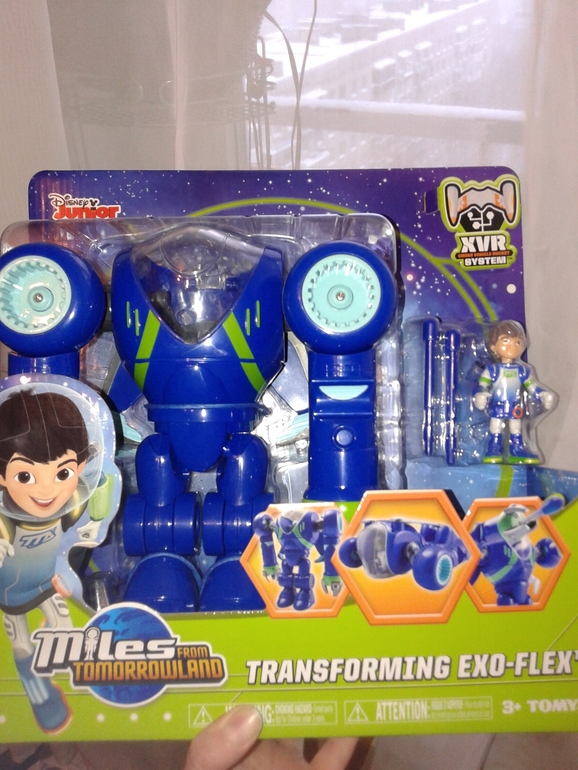 Этот синий робот трансформируется в вездеход. Майлз садится в кабину. Еще он стреляет палками. Тут у меня большое сомнение в правильности такого подарка моему ...эээ... не слишком спокойному и послушному трехлетке. Ладно, начнет стрелять в людей - патроны заберем.