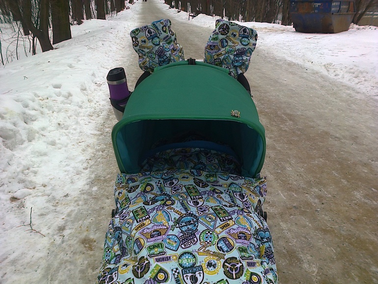У нас есть,но не пользовались.Он какой-то не удобный.На зиму конверт на овчине.