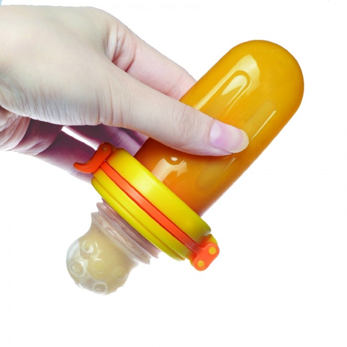 Дочка жмакает сама еду, выдавливает и кушает.Вообщем я довольна очень. Это наше спасение!!!